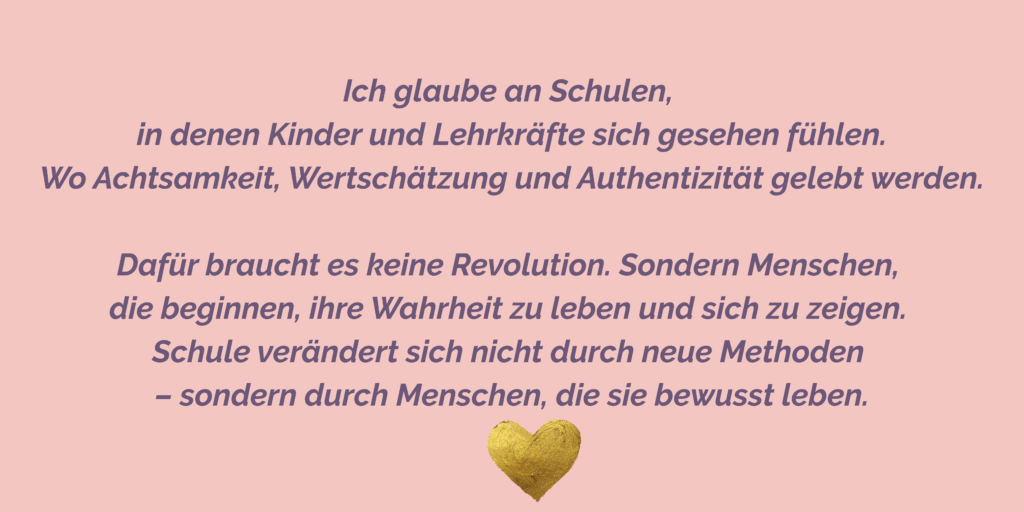 Ich begleite und unterstütze Lehrerinnen dabei, im herausfordernden Schulalltag mit sich selbst verbunden, authentisch und erfüllt